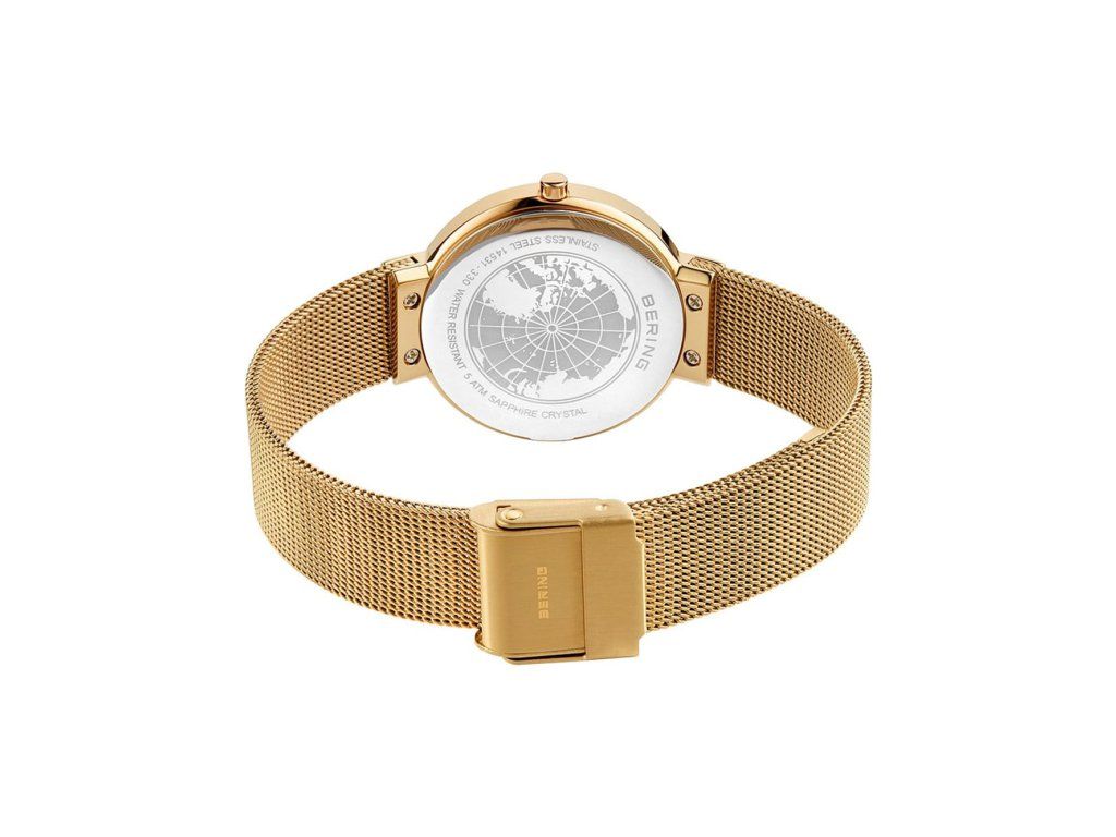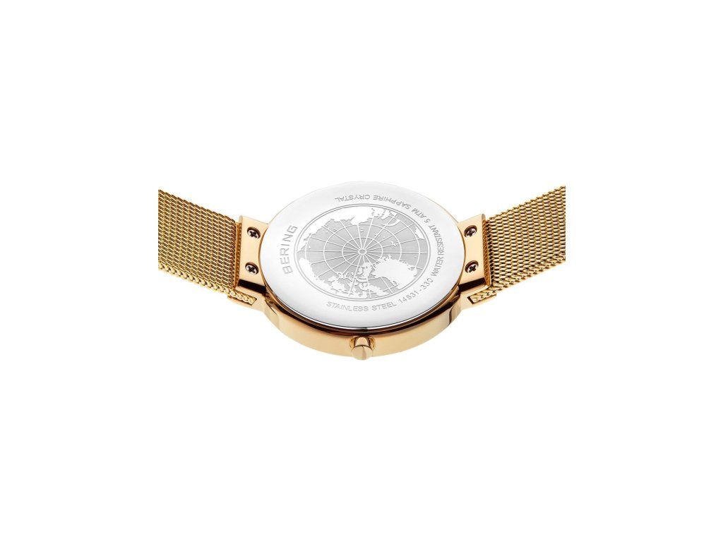 Dámske hodinky Bering 14531-330 sú elegantným spoločníkom z modelového radu Ladies Classic 31mm. Ideálna voľba, ak hľadáte hodinky s elegantným a zároveň moderným vzhľadom.Srdcom týchto hodiniek je Quartz (batériový) strojček, ktorý, ako je u hodiniek Bering zvykom, zaručuje presné meranie času.