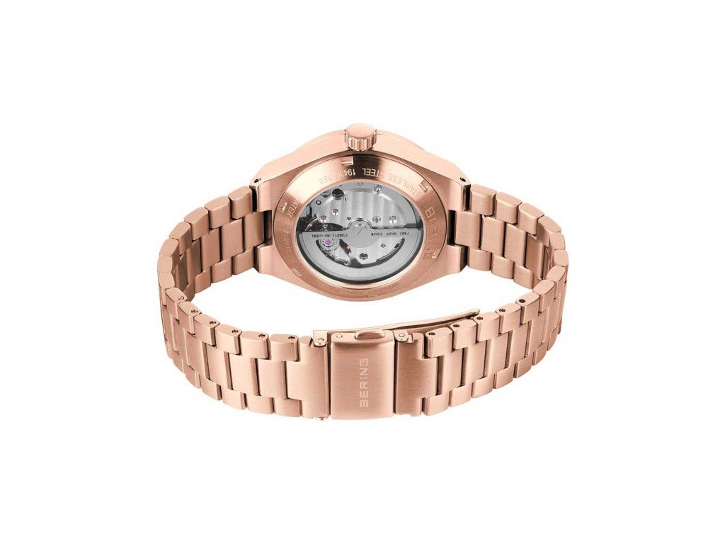 Dámske hodinky Bering 19435-762 sú elegantným spoločníkom z modelového radu Automatic 35mm 10ATM. Ideálna voľba, ak hľadáte hodinky s elegantným a zároveň moderným vzhľadom.Srdcom týchto hodiniek je Automatický strojček, ktorý, ako je u hodiniek Bering zvykom, zaručuje presné meranie času.