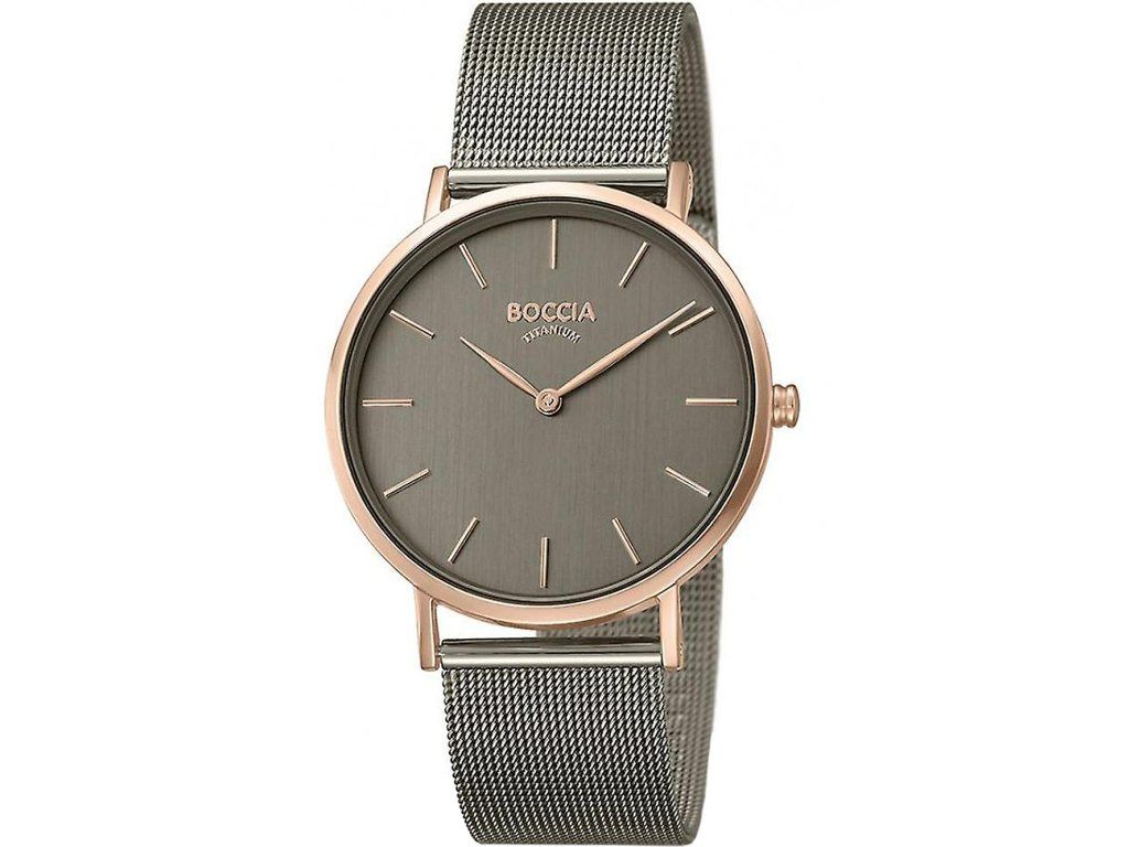 Dámske hodinky Boccia 3273-08 sú elegantným spoločníkom z modelového radu Ladies Watch Titanium 36mm. Ideálna voľba, ak hľadáte hodinky s elegantným a zároveň moderným vzhľadom.Srdcom týchto hodiniek je Quartz (batériový) strojček, ktorý, ako je u hodiniek Boccia zvykom, zaručuje presné meranie času.