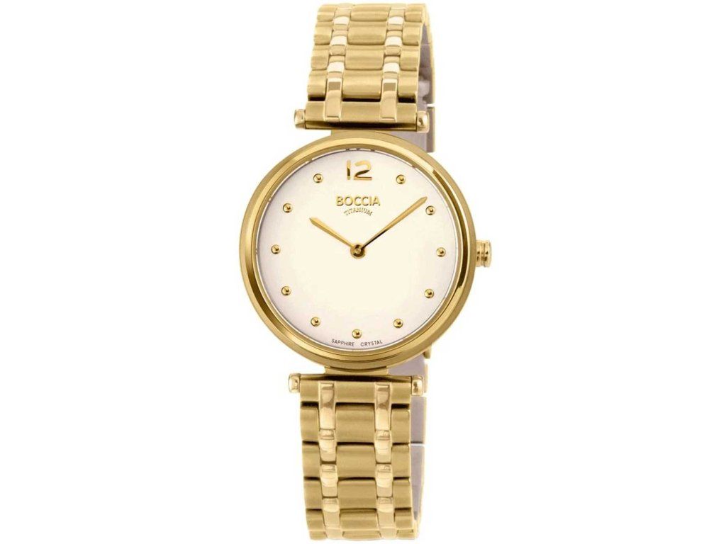 Dámske hodinky Boccia 3349-04 sú elegantným spoločníkom z modelového radu Titanium Sapphire crystal 30mm 5ATM. Ideálna voľba, ak hľadáte hodinky s elegantným a zároveň moderným vzhľadom.Srdcom týchto hodiniek je Quartz (batériový) strojček, ktorý, ako je u hodiniek Boccia zvykom, zaručuje presné meranie času.
