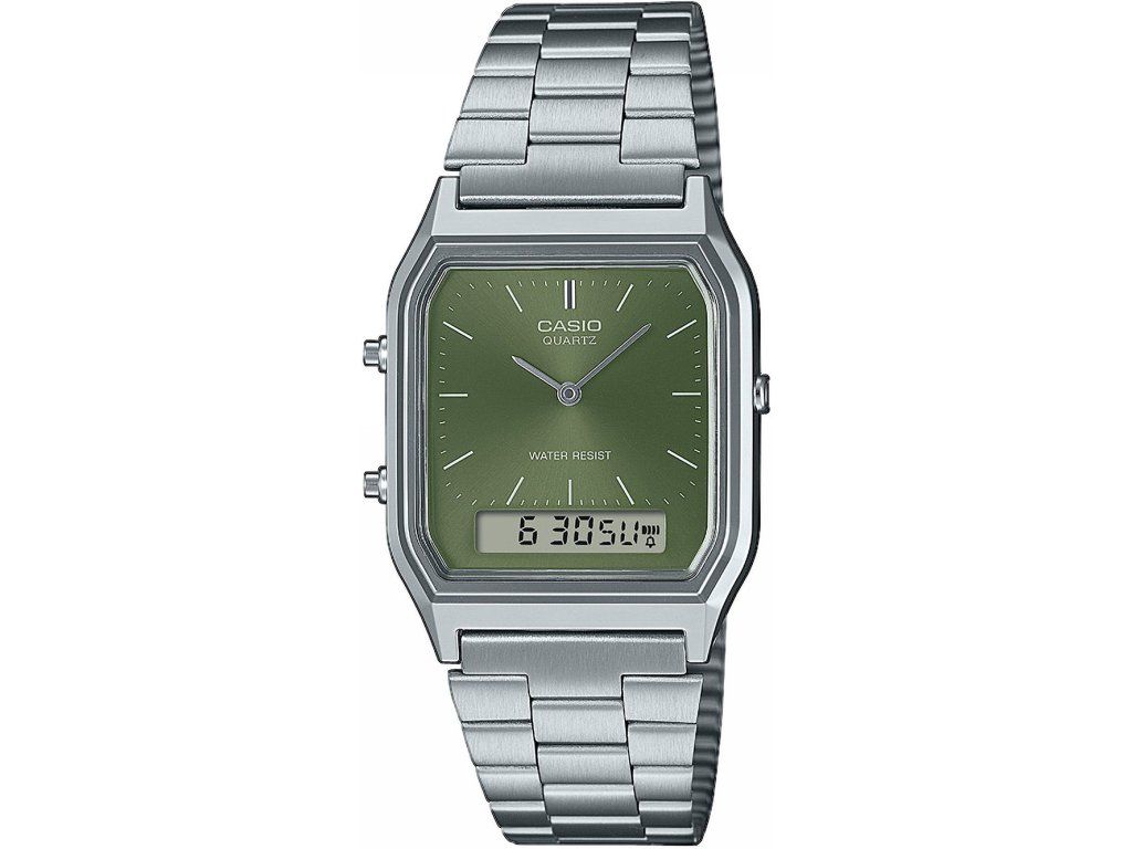 Pánske hodinky Casio AQ-230A-3AMQYES sú jedinečným spoločníkom na každú príležitosť. Hodinky z modelového radu Vintage Collection 30mm 1ATM sú pre vás ideálnou voľbou, ak hľadáte hodinky s elegantným a zároveň moderným vzhľadom.Srdcom týchto hodiniek je Quartz (batériový) strojček, ktorý, ako je u hodiniek Casio zvykom, zaručuje presné meranie času.