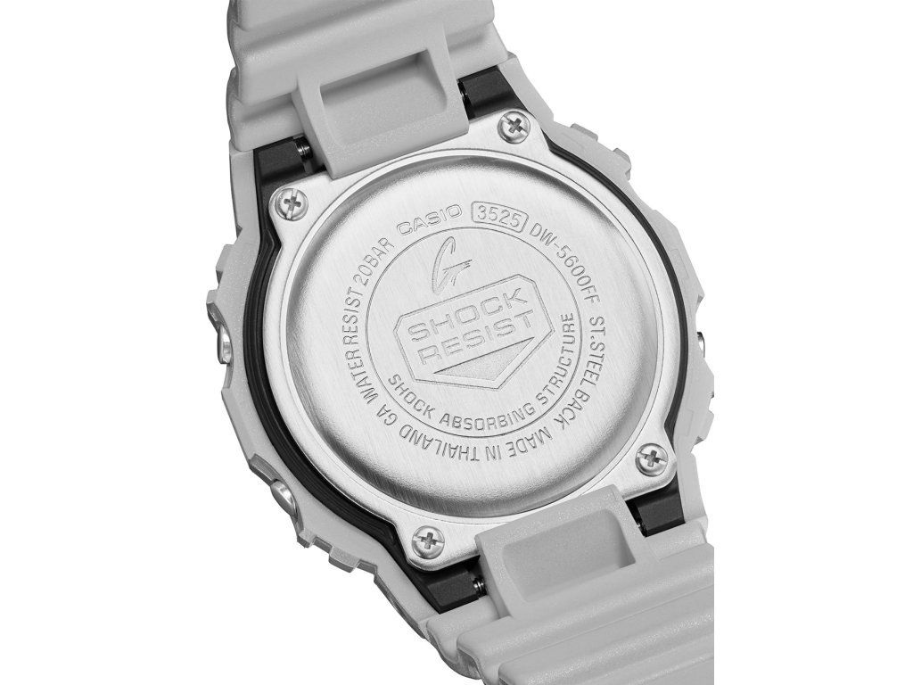 Pánske hodinky Casio DW-5600FF-8ER sú jedinečným spoločníkom na každú príležitosť. Hodinky z modelového radu G-Shock Origin 43mm 20ATM sú pre vás ideálnou voľbou, ak hľadáte hodinky s elegantným a zároveň moderným vzhľadom.Srdcom týchto hodiniek je Quartz (batériový) strojček, ktorý, ako je u hodiniek Casio zvykom, zaručuje presné meranie času.
