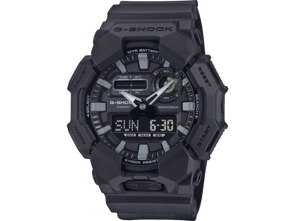 Pánske hodinky Casio GA-010-1A1ER sú jedinečným spoločníkom na každú príležitosť. Hodinky z modelového radu G-Shock Classic 52mm 20ATM sú pre vás ideálnou voľbou, ak hľadáte hodinky s elegantným a zároveň moderným vzhľadom.Srdcom týchto hodiniek je Quartz (batériový) strojček, ktorý, ako je u hodiniek Casio zvykom, zaručuje presné meranie času.