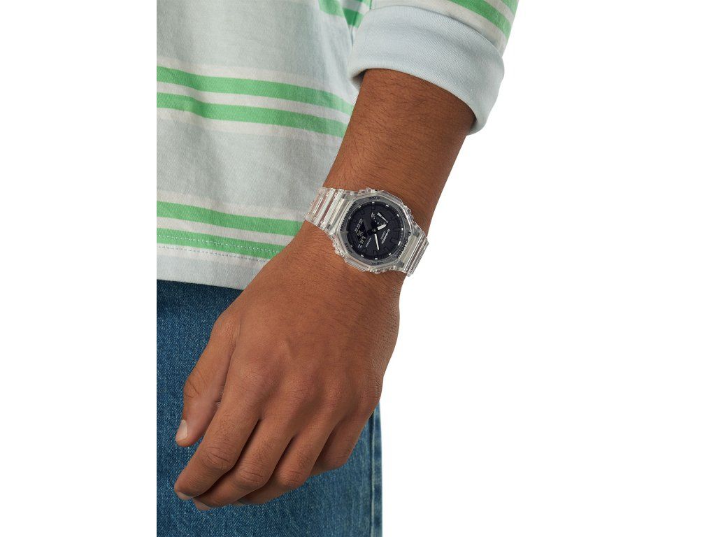 Pánske hodinky Casio GA-2100SKE-7AER sú jedinečným spoločníkom na každú príležitosť. Hodinky z modelového radu G-Shock 45mm sú pre vás ideálnou voľbou, ak hľadáte hodinky s elegantným a zároveň moderným vzhľadom.Srdcom týchto hodiniek je Quartz (batériový) strojček, ktorý, ako je u hodiniek Casio zvykom, zaručuje presné meranie času.