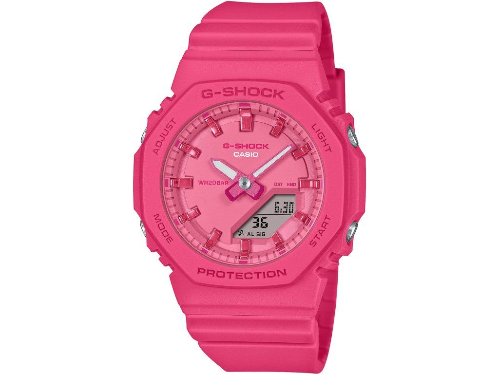 Dámske hodinky Casio GMA-P2100PP-4AER sú elegantným spoločníkom z modelového radu G-Shock Classic 40mm 20ATM. Ideálna voľba, ak hľadáte hodinky s elegantným a zároveň moderným vzhľadom.Srdcom týchto hodiniek je Quartz (batériový) strojček, ktorý, ako je u hodiniek Casio zvykom, zaručuje presné meranie času.