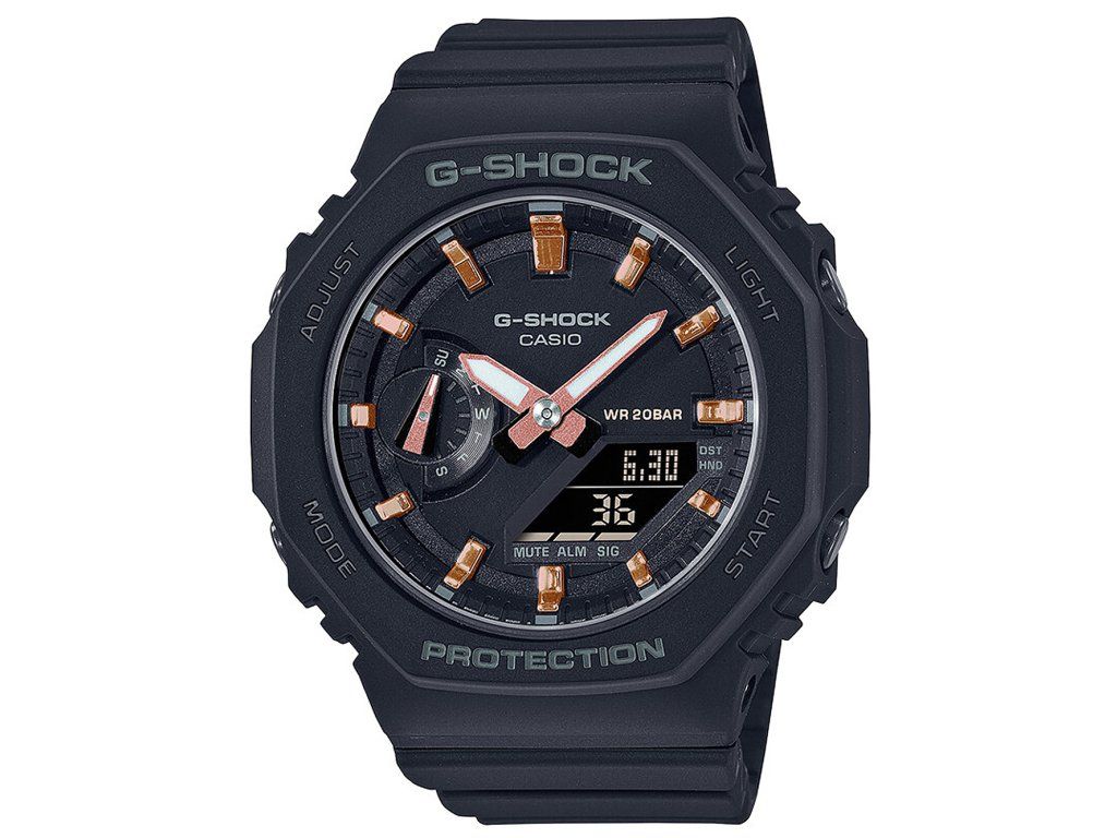 Pánske hodinky Casio GMA-S2100-1AER sú jedinečným spoločníkom na každú príležitosť. Hodinky z modelového radu G-Shock 43mm sú pre vás ideálnou voľbou, ak hľadáte hodinky s elegantným a zároveň moderným vzhľadom.Srdcom týchto hodiniek je Quartz (batériový) strojček, ktorý, ako je u hodiniek Casio zvykom, zaručuje presné meranie času.