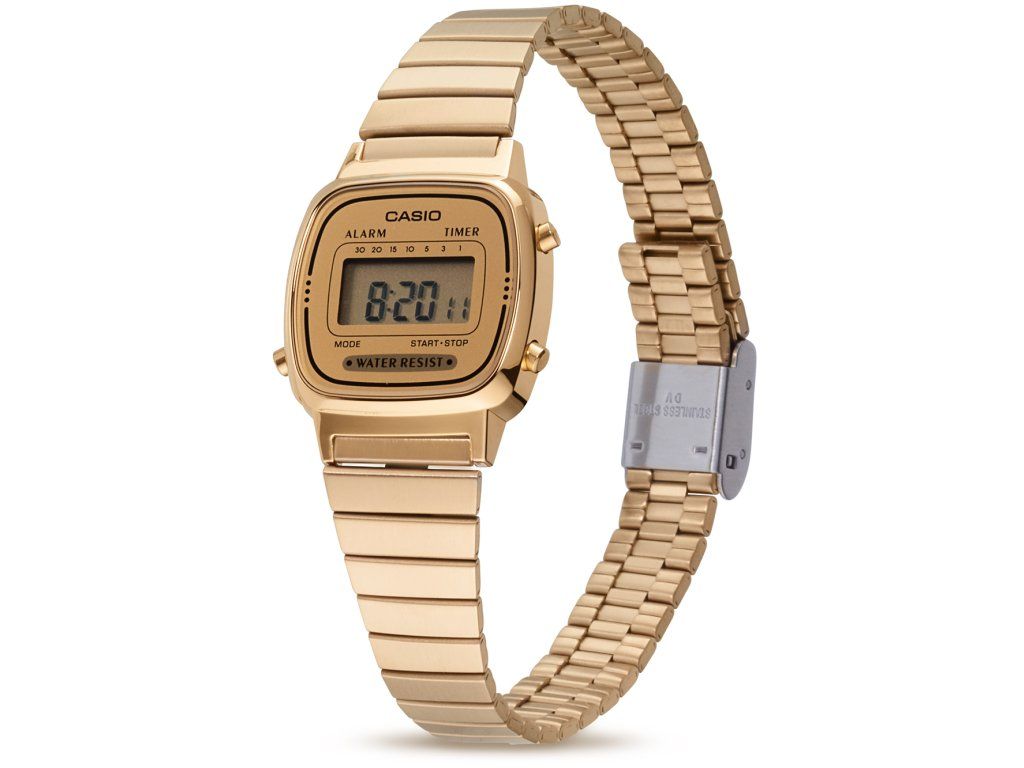 Dámske hodinky Casio LA670WEGA-9EF sú elegantným spoločníkom z modelového radu Collection. Ideálna voľba, ak hľadáte hodinky s elegantným a zároveň moderným vzhľadom.Srdcom týchto hodiniek je Quartz (batériový) strojček, ktorý, ako je u hodiniek Casio zvykom, zaručuje presné meranie času.