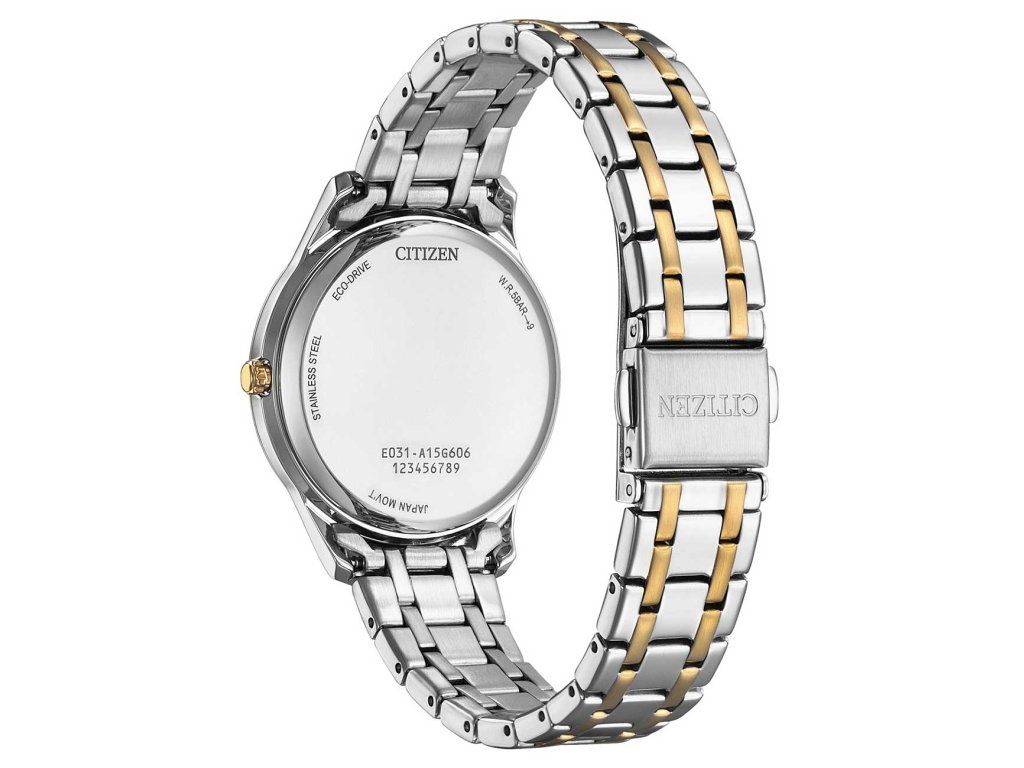 Dámske hodinky Citizen EM0416-78A sú elegantným spoločníkom z modelového radu Eco-Drive Elegance 34mm 5ATM. Ideálna voľba, ak hľadáte hodinky s elegantným a zároveň moderným vzhľadom.Srdcom týchto hodiniek je špičkový solárny pohon Citizen Eco-Drive. Solárny pohon Eco-Drive premieňa akýkoľvek druh svetla na energiu na napájanie hodiniek a prebytok ukladá do batériového článku. Na jedno plné nabitie fungujú hodinky Eco-Drive celé mesiace aj v tme bez potreby pravidelnej výmeny batérie. Eco-drive je navrhnutý tak, aby sa nabíjal z bežných každodenných zdrojov svetla, ako sú vnútorné osvetlenie, stolové lampy a slnečné svetlo. Ak chcete hodinky úplne nabiť, nechajte ich nabíjať 8-12 hodín na priamom slnečnom svetle alebo 130 hodín pri umelom osvetlení. Môžete sa venovať svojmu každodennému životu s istotou, že sa vaše hodinky nikdy nezastavia.