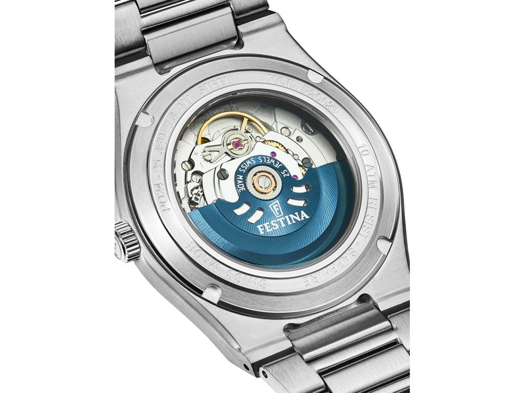 Dámske hodinky Festina F20029/6 sú elegantným spoločníkom z modelového radu Swiss Made Rivé Automatic 35mm 10ATM. Ideálna voľba, ak hľadáte hodinky s elegantným a zároveň moderným vzhľadom.Srdcom týchto hodiniek je Automatický strojček, ktorý, ako je u hodiniek Festina zvykom, zaručuje presné meranie času.