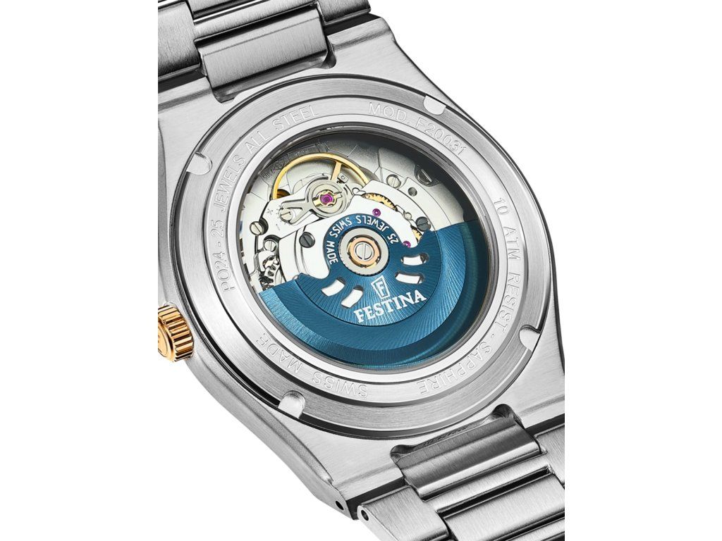Dámske hodinky Festina F20031/1 sú elegantným spoločníkom z modelového radu Swiss Made Rivé Automatic 35mm 10ATM. Ideálna voľba, ak hľadáte hodinky s elegantným a zároveň moderným vzhľadom.Srdcom týchto hodiniek je Automatický strojček, ktorý, ako je u hodiniek Festina zvykom, zaručuje presné meranie času.