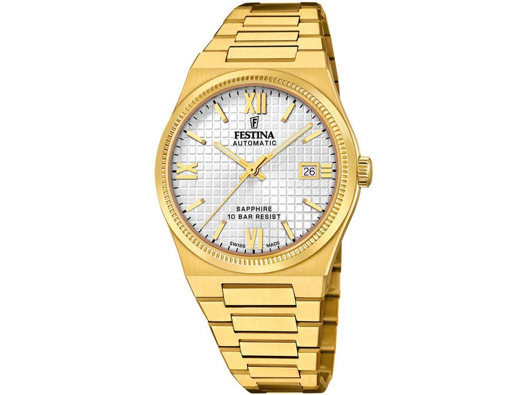 Pánske hodinky Festina F20032/1 sú jedinečným spoločníkom na každú príležitosť. Hodinky z modelového radu Swiss Made Rivé Automatic 40mm 10ATM sú pre vás ideálnou voľbou, ak hľadáte hodinky s elegantným a zároveň moderným vzhľadom.Srdcom týchto hodiniek je Automatický strojček, ktorý, ako je u hodiniek Festina zvykom, zaručuje presné meranie času.