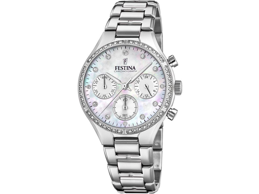 Dámske hodinky Festina F20401/1 sú elegantným spoločníkom z modelového radu Boyfriend chronograph 36mm. Ideálna voľba, ak hľadáte hodinky s elegantným a zároveň moderným vzhľadom.Srdcom týchto hodiniek je Quartz (batériový) strojček, ktorý, ako je u hodiniek Festina zvykom, zaručuje presné meranie času.