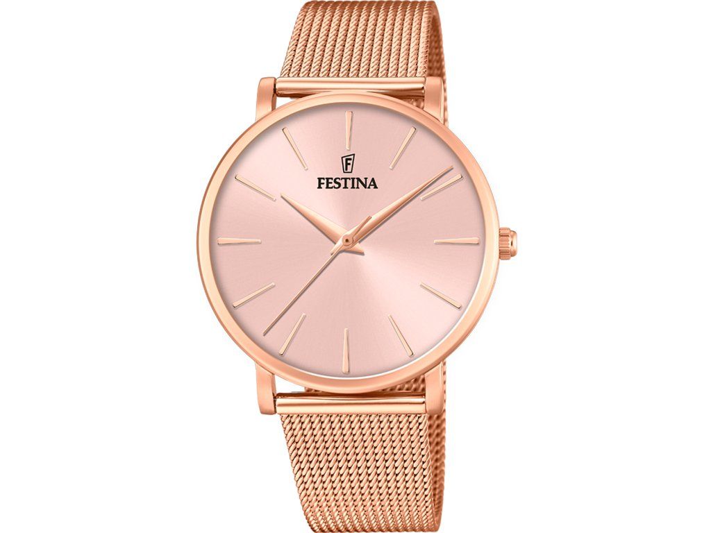 Náramkové hodinky španielskej spoločnosti Festina, ktorá v súčasnosti sídli v Španielsku, sa vracajú k mottu "Festina Lente" ponáhľaj sa s časom. Korene výrobcu hodiniek ležia vo Švajčiarsku a siahajú až do roku 1902. Súčasné modely sú charakteristické svojou blízkosťou k športu. Presviedčajú svojím športovo aktívnym dizajnom; najmä pánske hodinky a chronografy. Modely dámskej kolekcie zaujmú aj hravými dizajnovými prvkami. Cena hodiniek Festina: bezkonkurenčne nízka!