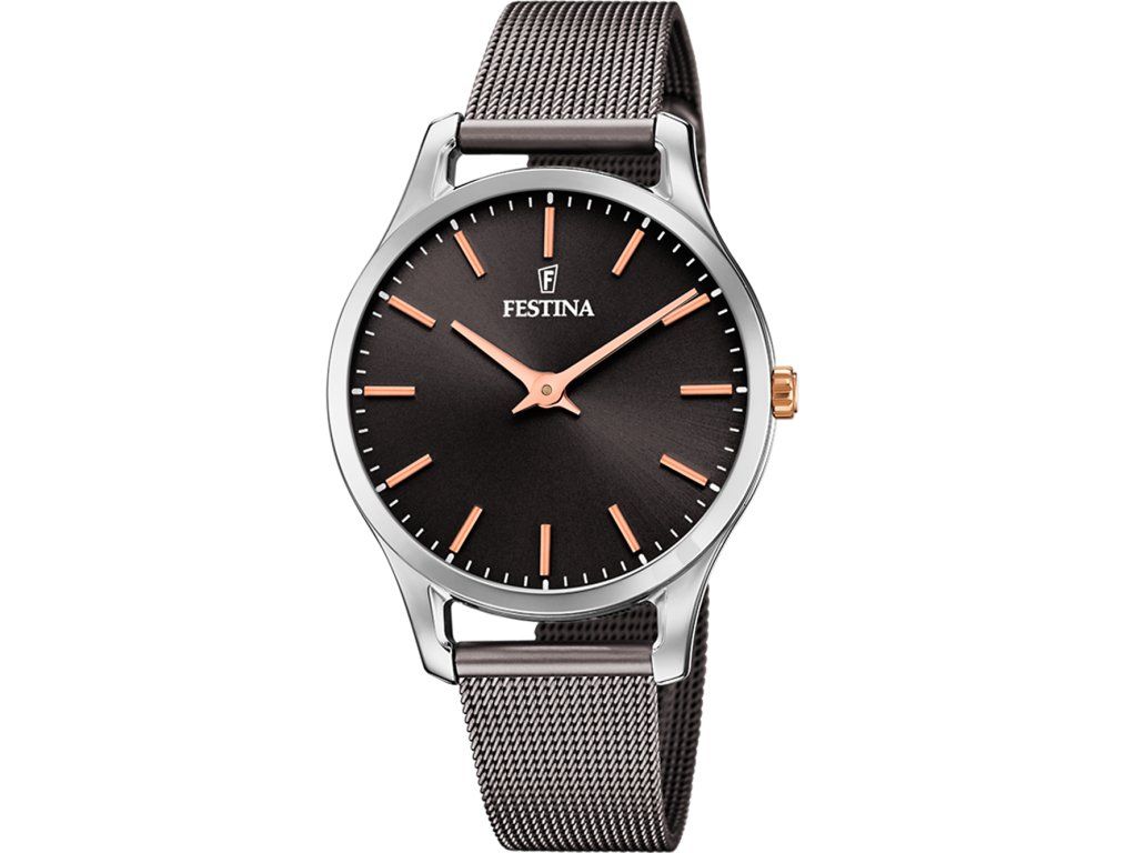 Náramkové hodinky španielskej spoločnosti Festina, ktorá v súčasnosti sídli v Španielsku, sa vracajú k mottu "Festina Lente" ponáhľaj sa s časom. Korene výrobcu hodiniek ležia vo Švajčiarsku a siahajú až do roku 1902. Súčasné modely sú charakteristické svojou blízkosťou k športu. Presviedčajú svojím športovo aktívnym dizajnom; najmä pánske hodinky a chronografy. Modely dámskej kolekcie zaujmú aj hravými dizajnovými prvkami. Cena hodiniek Festina: bezkonkurenčne nízka!