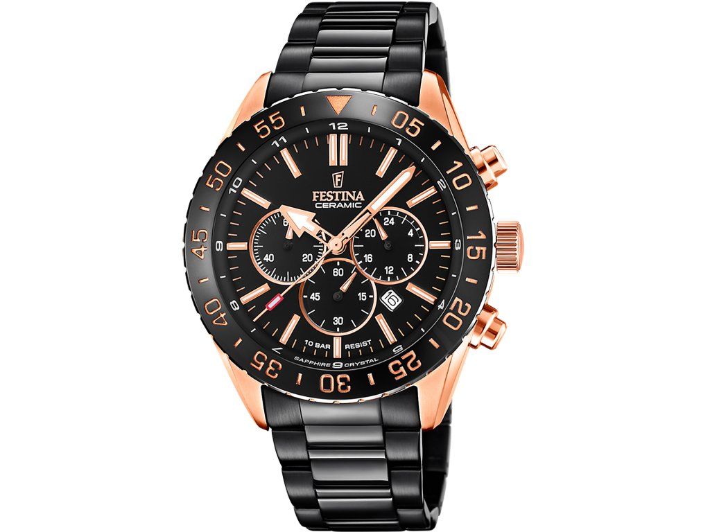 Pánske hodinky Festina F20578/1 sú jedinečným spoločníkom na každú príležitosť. Hodinky z modelového radu Ceramic Chronograph 44mm sú pre vás ideálnou voľbou, ak hľadáte hodinky s elegantným a zároveň moderným vzhľadom.Srdcom týchto hodiniek je Quartz (batériový) strojček, ktorý, ako je u hodiniek Festina zvykom, zaručuje presné meranie času.