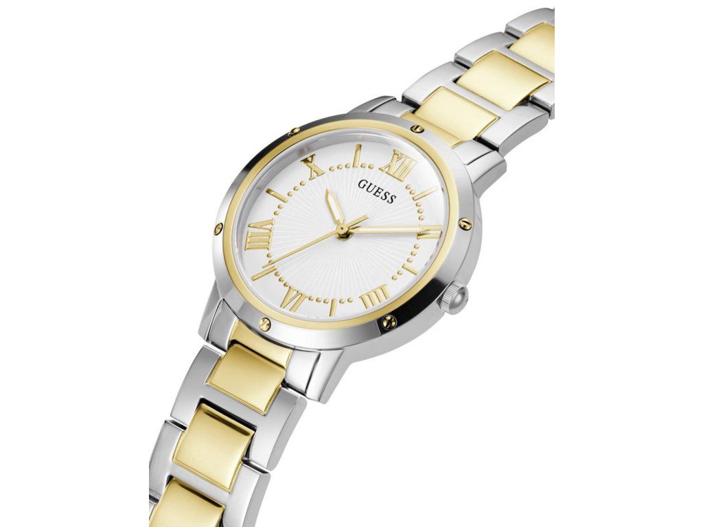 Dámske hodinky Guess GW0404L2 sú elegantným spoločníkom z modelového radu Dawn 34mm 1ATM. Ideálna voľba, ak hľadáte hodinky s elegantným a zároveň moderným vzhľadom.Srdcom týchto hodiniek je Quartz (batériový) strojček, ktorý, ako je u hodiniek Guess zvykom, zaručuje presné meranie času.
