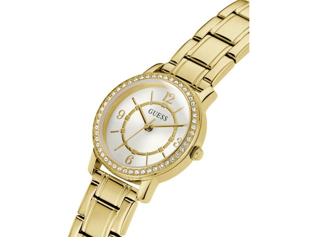 Dámske hodinky Guess GW0468L2 sú elegantným spoločníkom z modelového radu Melody 28mm 1ATM. Ideálna voľba, ak hľadáte hodinky s elegantným a zároveň moderným vzhľadom.Srdcom týchto hodiniek je Quartz (batériový) strojček, ktorý, ako je u hodiniek Guess zvykom, zaručuje presné meranie času.
