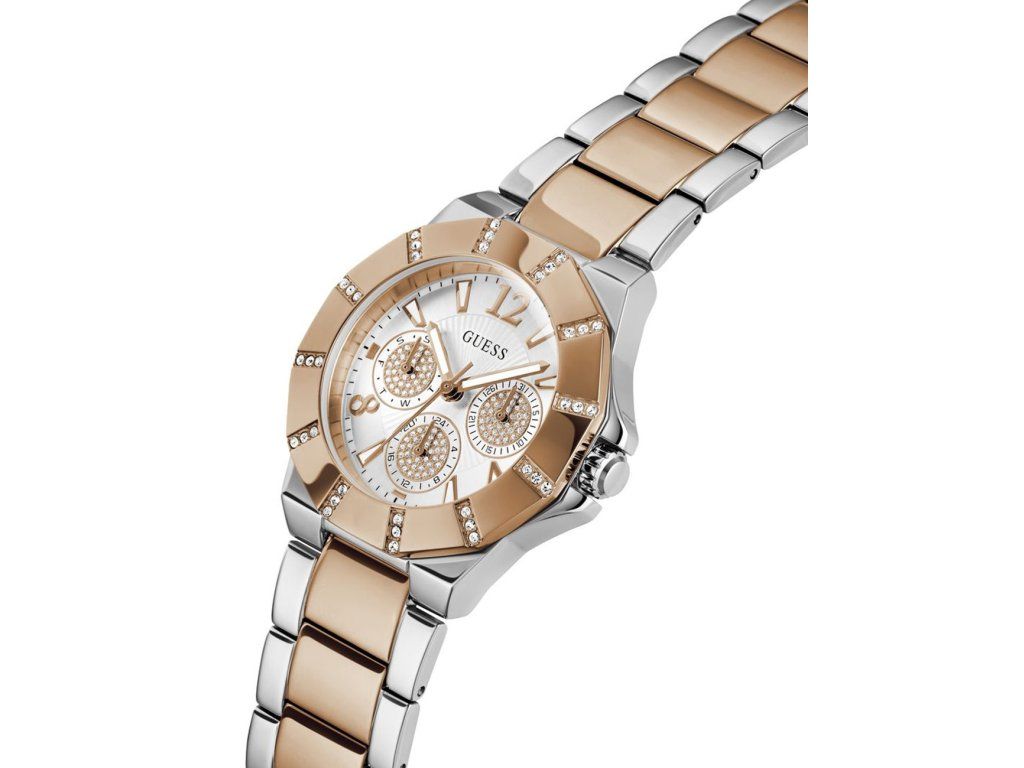 Dámske hodinky Guess GW0616L3 sú elegantným spoločníkom z modelového radu Sunray 36mm 1ATM. Ideálna voľba, ak hľadáte hodinky s elegantným a zároveň moderným vzhľadom.Srdcom týchto hodiniek je Quartz (batériový) strojček, ktorý, ako je u hodiniek Guess zvykom, zaručuje presné meranie času.