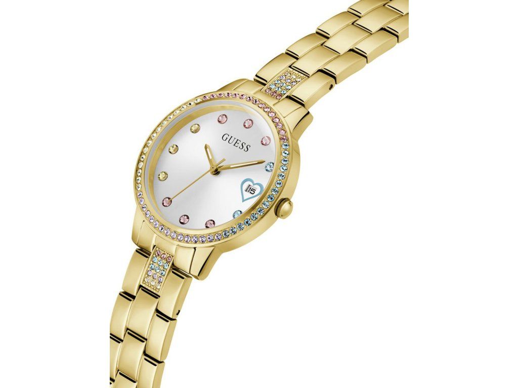 Dámske hodinky Guess GW0657L2 sú elegantným spoločníkom z modelového radu Three of Hearts 34mm 1ATM. Ideálna voľba, ak hľadáte hodinky s elegantným a zároveň moderným vzhľadom.Srdcom týchto hodiniek je Quartz (batériový) strojček, ktorý, ako je u hodiniek Guess zvykom, zaručuje presné meranie času.