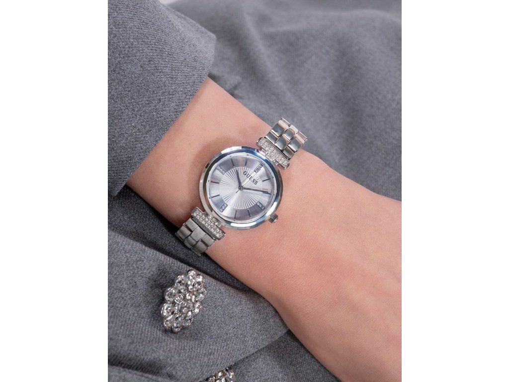 Dámske hodinky Guess GW0762L1 sú elegantným spoločníkom z modelového radu Array 28mm 1ATM. Ideálna voľba, ak hľadáte hodinky s elegantným a zároveň moderným vzhľadom.Srdcom týchto hodiniek je Quartz (batériový) strojček, ktorý, ako je u hodiniek Guess zvykom, zaručuje presné meranie času.