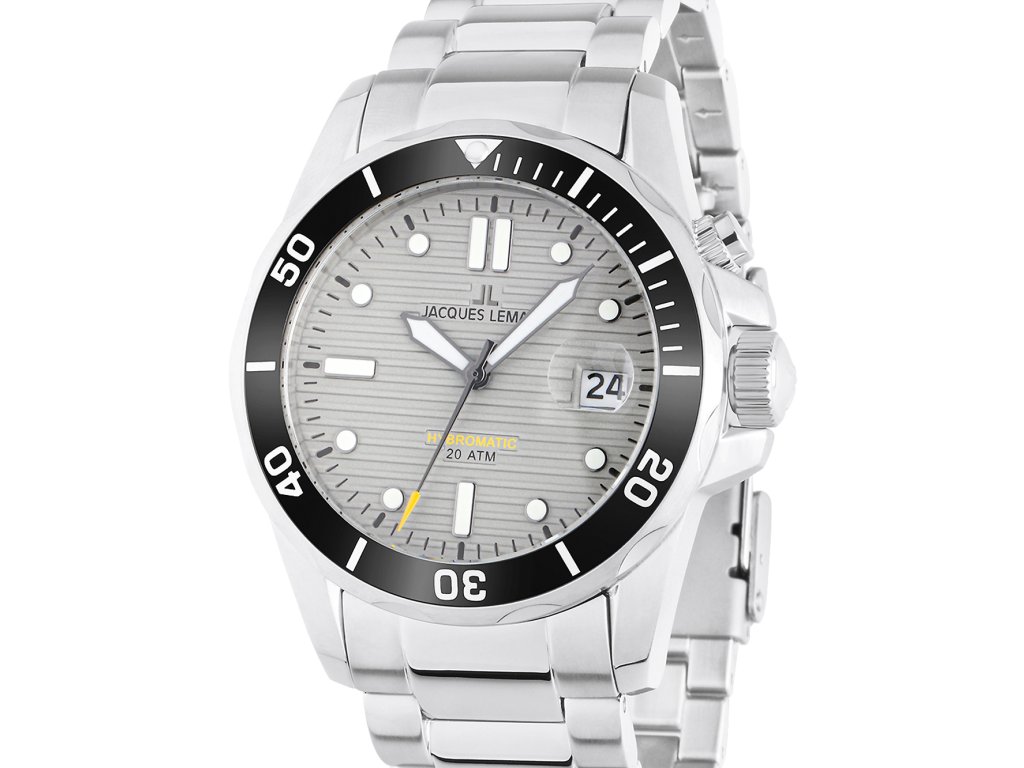 Pánske hodinky Jacques Lemans 1-2170H sú jedinečným spoločníkom na každú príležitosť. Hodinky z modelového radu Hybromatic Diver 41mm 20ATM sú pre vás ideálnou voľbou, ak hľadáte hodinky s elegantným a zároveň moderným vzhľadom.Srdcom týchto hodiniek je Hybrid (Automatic/Quartz) strojček, ktorý, ako je u hodiniek Jacques Lemans zvykom, zaručuje presné meranie času.