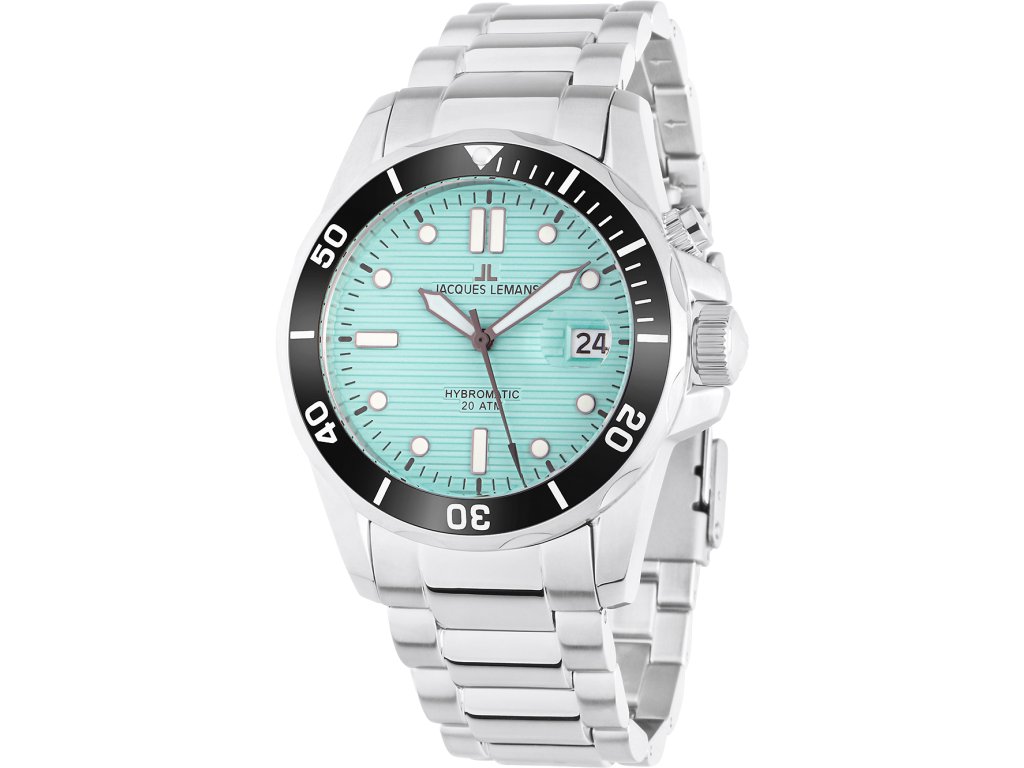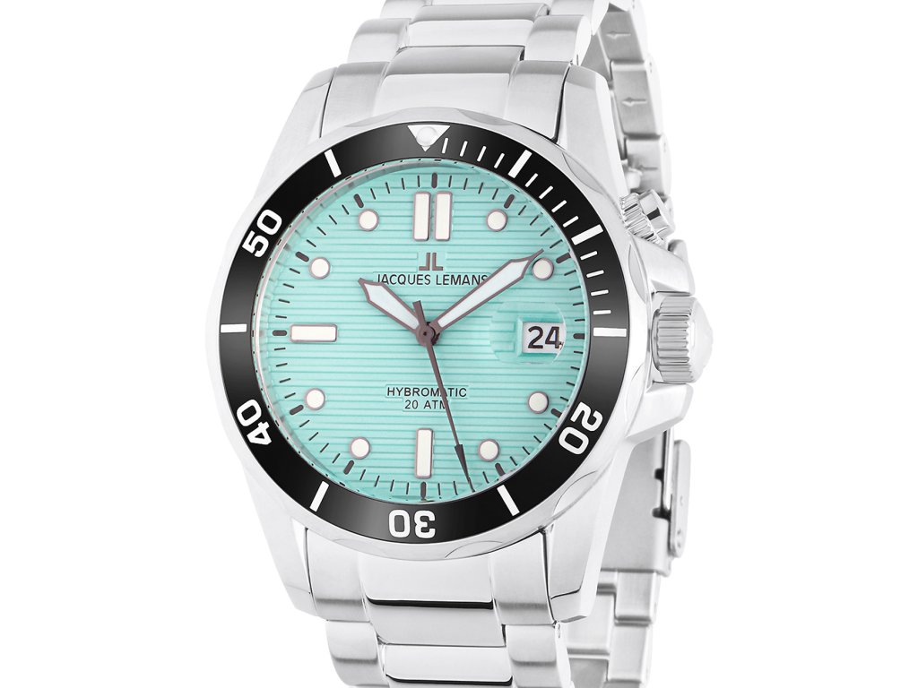 Pánske hodinky Jacques Lemans 1-2170I sú jedinečným spoločníkom na každú príležitosť. Hodinky z modelového radu Hybromatic Diver 41mm 20ATM sú pre vás ideálnou voľbou, ak hľadáte hodinky s elegantným a zároveň moderným vzhľadom.Srdcom týchto hodiniek je Hybrid (Automatic/Quartz) strojček, ktorý, ako je u hodiniek Jacques Lemans zvykom, zaručuje presné meranie času.