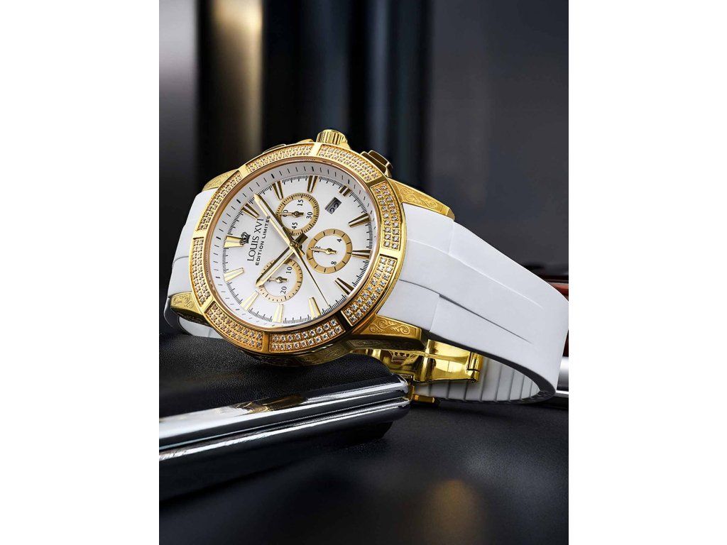 Pánske hodinky Louis XVI LXVI1136 sú jedinečným spoločníkom na každú príležitosť. Hodinky z modelového radu Majeste Iced Out Royale 43mm 5ATM sú pre vás ideálnou voľbou, ak hľadáte hodinky s elegantným a zároveň moderným vzhľadom.Srdcom týchto hodiniek je Quartz (batériový) strojček, ktorý, ako je u hodiniek Louis XVI zvykom, zaručuje presné meranie času.