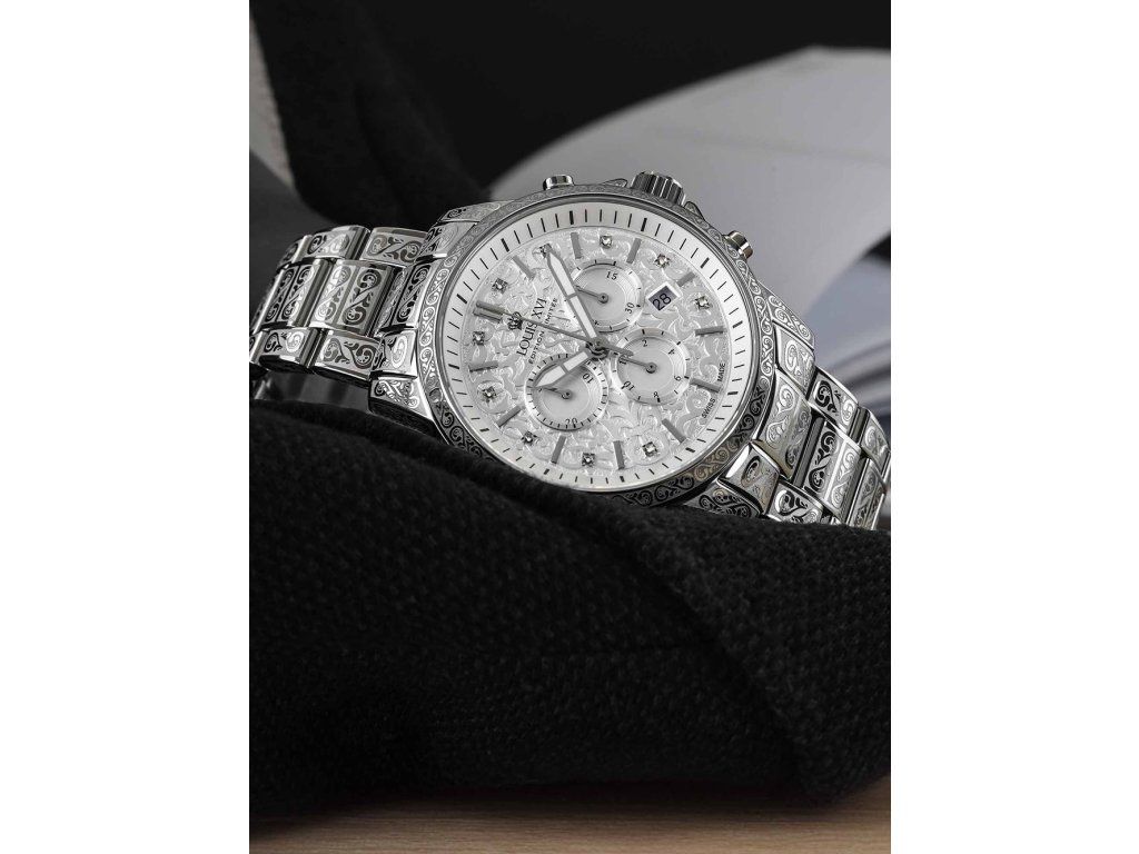 Pánske hodinky Louis XVI LXVI1820 sú jedinečným spoločníkom na každú príležitosť. Hodinky z modelového radu Palais Royale 2.0 Diamond 43mm 10ATM sú pre vás ideálnou voľbou, ak hľadáte hodinky s elegantným a zároveň moderným vzhľadom.Srdcom týchto hodiniek je Quartz (batériový) strojček, ktorý, ako je u hodiniek Louis XVI zvykom, zaručuje presné meranie času.