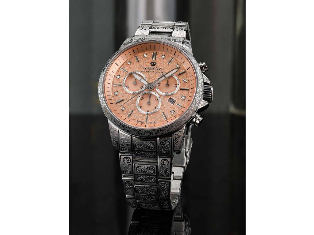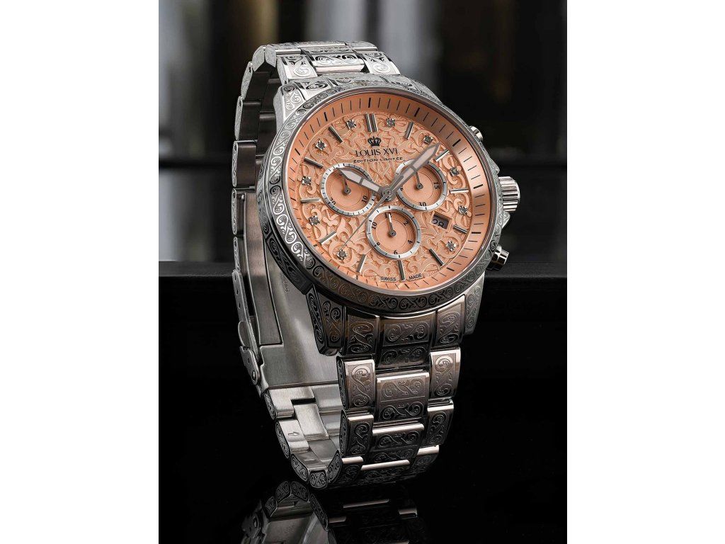 Pánske hodinky Louis XVI LXVI1829 sú jedinečným spoločníkom na každú príležitosť. Hodinky z modelového radu Palais Royale 2.0 Diamond 43mm 10ATM sú pre vás ideálnou voľbou, ak hľadáte hodinky s elegantným a zároveň moderným vzhľadom.Srdcom týchto hodiniek je Quartz (batériový) strojček, ktorý, ako je u hodiniek Louis XVI zvykom, zaručuje presné meranie času.