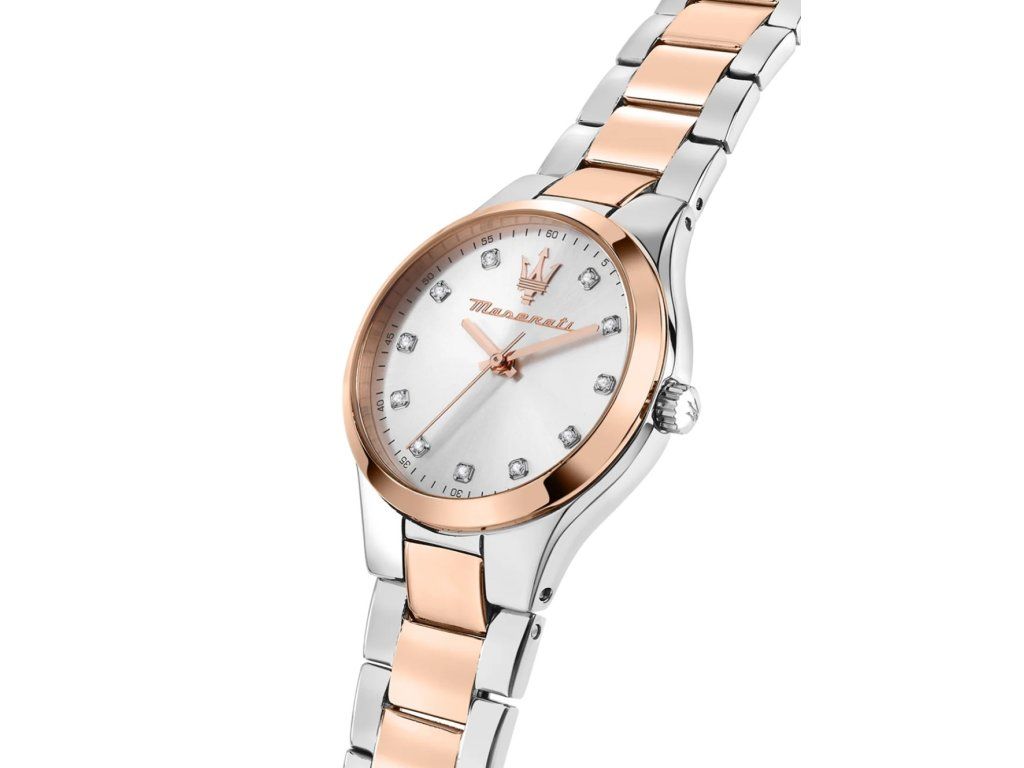 Dámske hodinky Maserati R8853151502 sú elegantným spoločníkom z modelového radu Attrazione 30mm 5ATM. Ideálna voľba, ak hľadáte hodinky s elegantným a zároveň moderným vzhľadom.Srdcom týchto hodiniek je Quartz (batériový) strojček, ktorý, ako je u hodiniek Maserati zvykom, zaručuje presné meranie času.