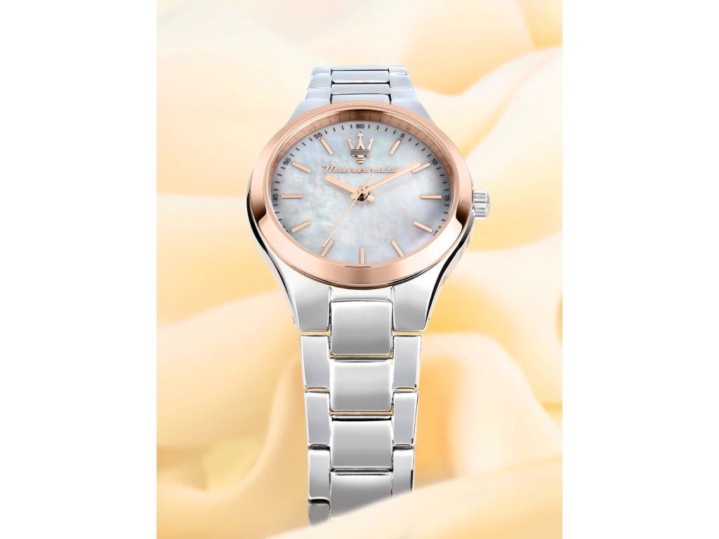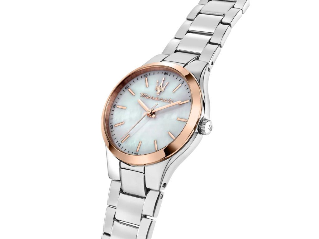 Dámske hodinky Maserati R8853151503 sú elegantným spoločníkom z modelového radu Attrazione 30mm 5ATM. Ideálna voľba, ak hľadáte hodinky s elegantným a zároveň moderným vzhľadom.Srdcom týchto hodiniek je Quartz (batériový) strojček, ktorý, ako je u hodiniek Maserati zvykom, zaručuje presné meranie času.