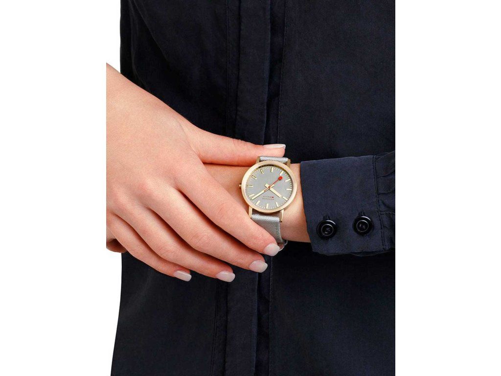 Dámske hodinky Mondaine A660.30314.80SBU sú elegantným spoločníkom z modelového radu Classic Gray And Gold 36mm 3ATM. Ideálna voľba, ak hľadáte hodinky s elegantným a zároveň moderným vzhľadom.Srdcom týchto hodiniek je Quartz (batériový) strojček, ktorý, ako je u hodiniek Mondaine zvykom, zaručuje presné meranie času.