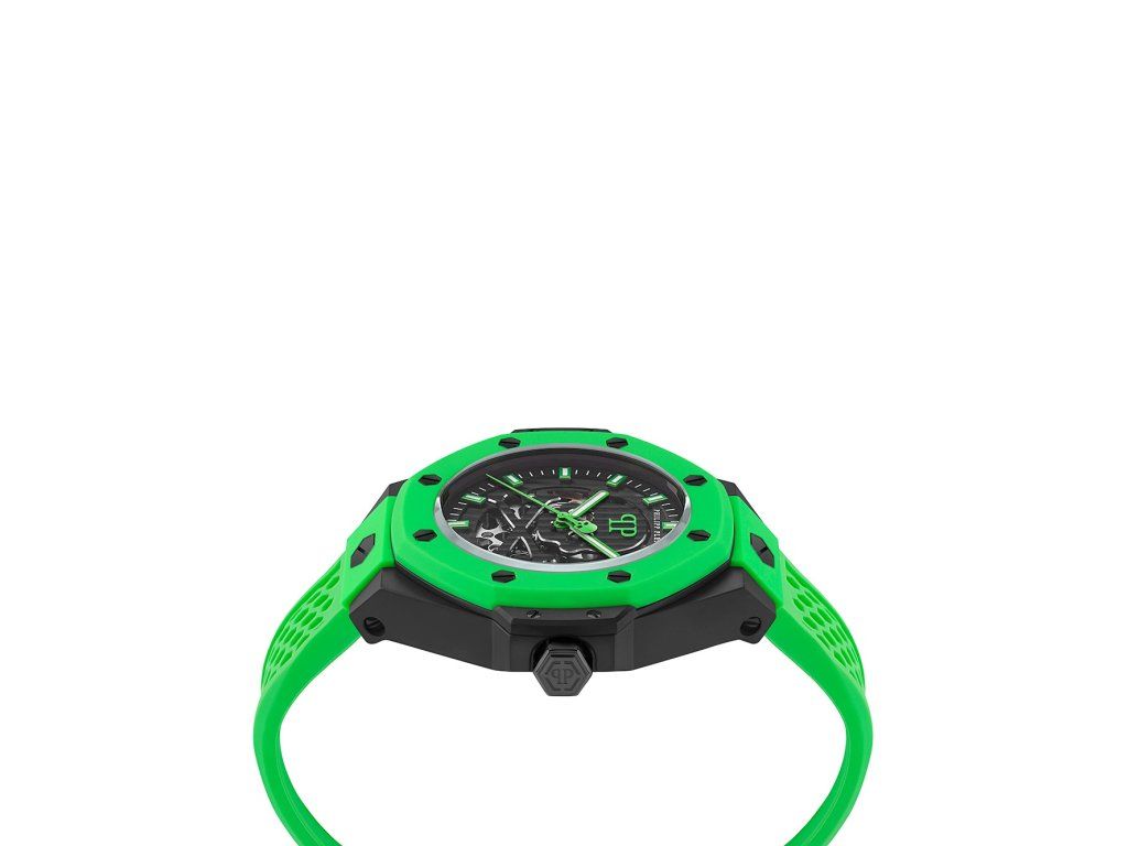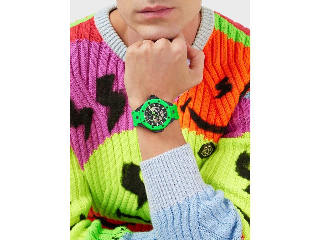 Pánske hodinky Philipp Plein PWPFA0624 sú jedinečným spoločníkom na každú príležitosť. Hodinky z modelového radu Skeleton Royal Automatic 46mm 5ATM sú pre vás ideálnou voľbou, ak hľadáte hodinky s elegantným a zároveň moderným vzhľadom.Srdcom týchto hodiniek je Automatický strojček, ktorý, ako je u hodiniek Philipp Plein zvykom, zaručuje presné meranie času.