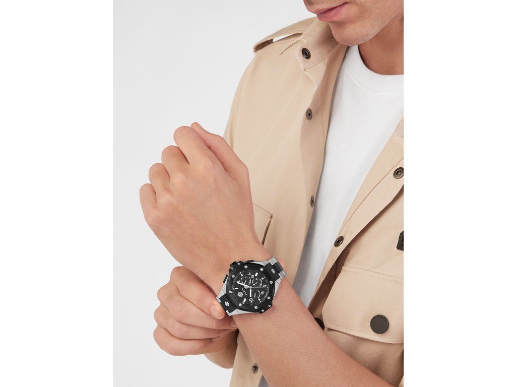 Pánske hodinky Philipp Plein PWPRA0224 sú jedinečným spoločníkom na každú príležitosť. Hodinky z modelového radu Chrono Royal 46mm 5ATM sú pre vás ideálnou voľbou, ak hľadáte hodinky s elegantným a zároveň moderným vzhľadom.Srdcom týchto hodiniek je Quartz (batériový) strojček, ktorý, ako je u hodiniek Philipp Plein zvykom, zaručuje presné meranie času.
