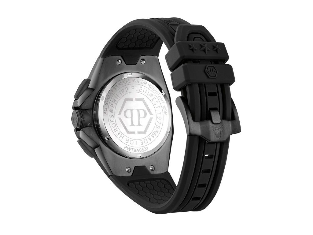 Pánske hodinky Philipp Plein PWTBA0623 sú jedinečným spoločníkom na každú príležitosť. Hodinky z modelového radu Octagon 45mm 5ATM sú pre vás ideálnou voľbou, ak hľadáte hodinky s elegantným a zároveň moderným vzhľadom.Srdcom týchto hodiniek je Quartz (batériový) strojček, ktorý, ako je u hodiniek Philipp Plein zvykom, zaručuje presné meranie času.