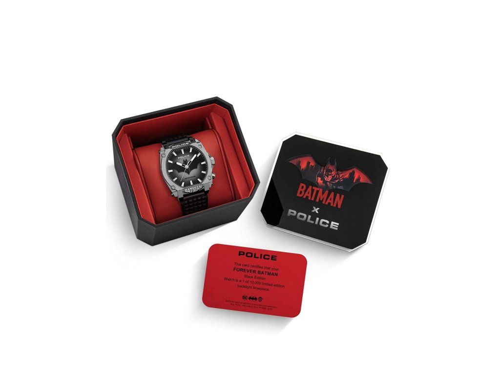 Pánske hodinky Police PEWGD0022603 sú jedinečným spoločníkom na každú príležitosť. Hodinky z modelového radu Batman Limited Edition 45mm 5ATM sú pre vás ideálnou voľbou, ak hľadáte hodinky s elegantným a zároveň moderným vzhľadom.Srdcom týchto hodiniek je Quartz (batériový) strojček, ktorý, ako je u hodiniek Police zvykom, zaručuje presné meranie času.