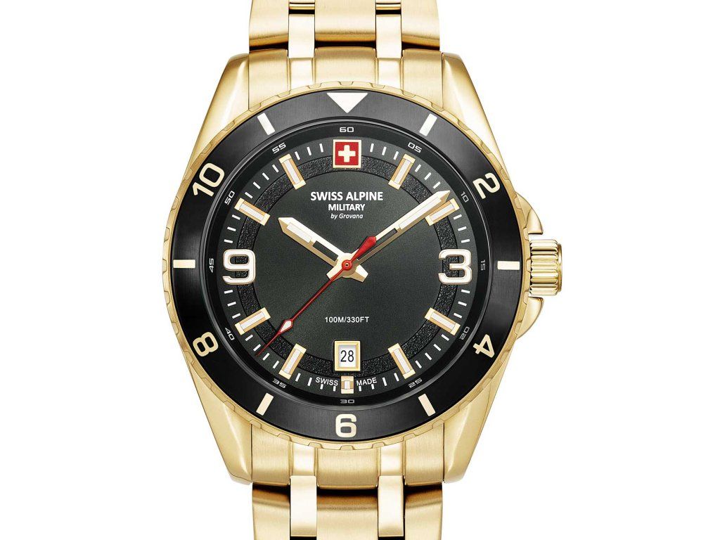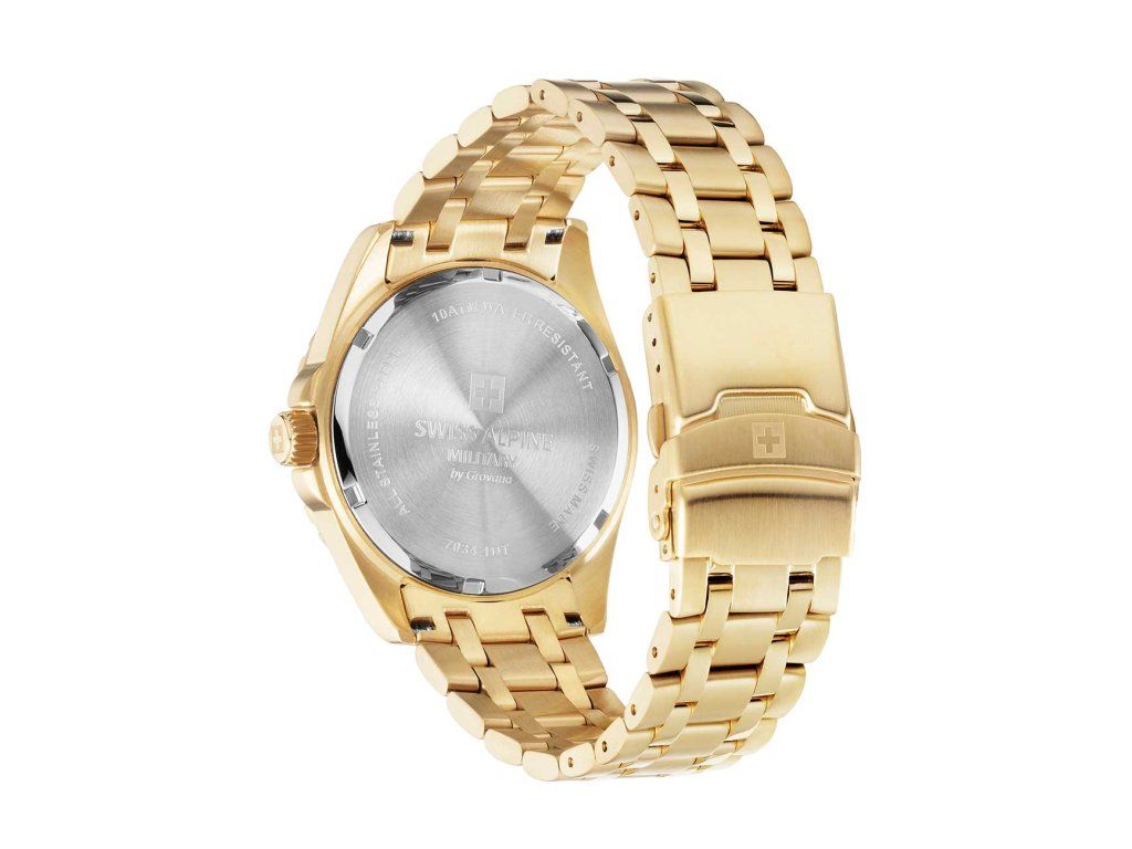 Pánske hodinky Swiss Alpine Military 7034.1117 sú jedinečným spoločníkom na každú príležitosť. Hodinky z modelového radu Sierra gold black 42mm 10ATM sú pre vás ideálnou voľbou, ak hľadáte hodinky s elegantným a zároveň moderným vzhľadom.Srdcom týchto hodiniek je Quartz (batériový) strojček, ktorý, ako je u hodiniek Swiss Alpine Military zvykom, zaručuje presné meranie času.