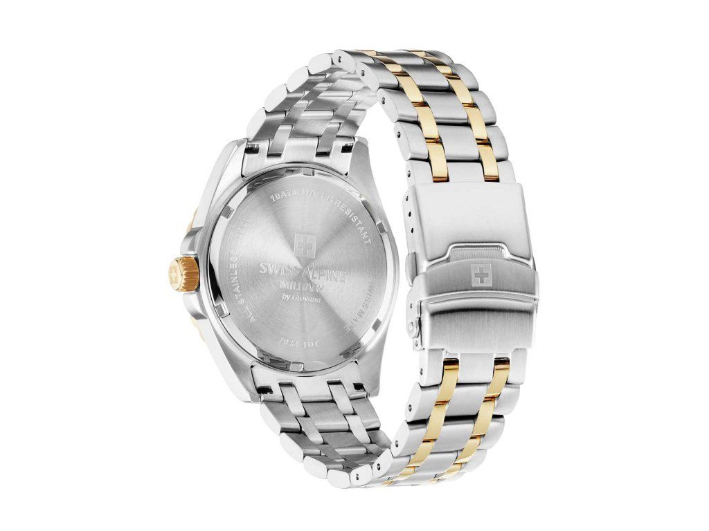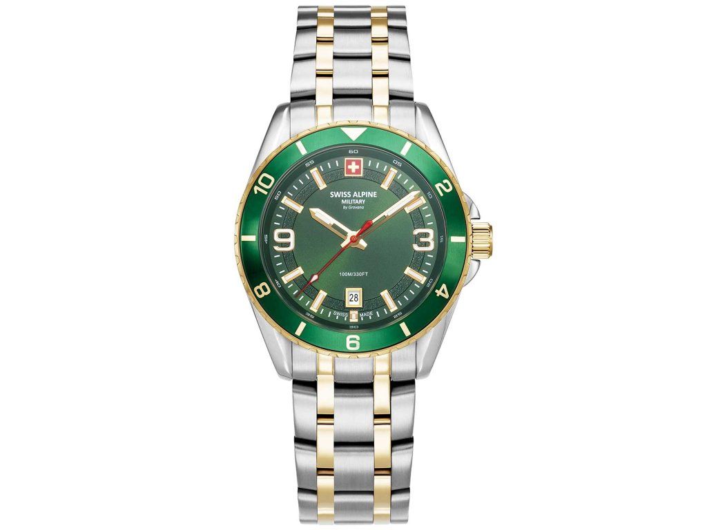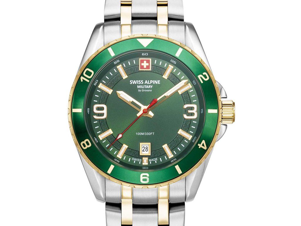 Pánske hodinky Swiss Alpine Military 7034.1144 sú jedinečným spoločníkom na každú príležitosť. Hodinky z modelového radu Sierra two tone green 42mm 10ATM sú pre vás ideálnou voľbou, ak hľadáte hodinky s elegantným a zároveň moderným vzhľadom.Srdcom týchto hodiniek je Quartz (batériový) strojček, ktorý, ako je u hodiniek Swiss Alpine Military zvykom, zaručuje presné meranie času.