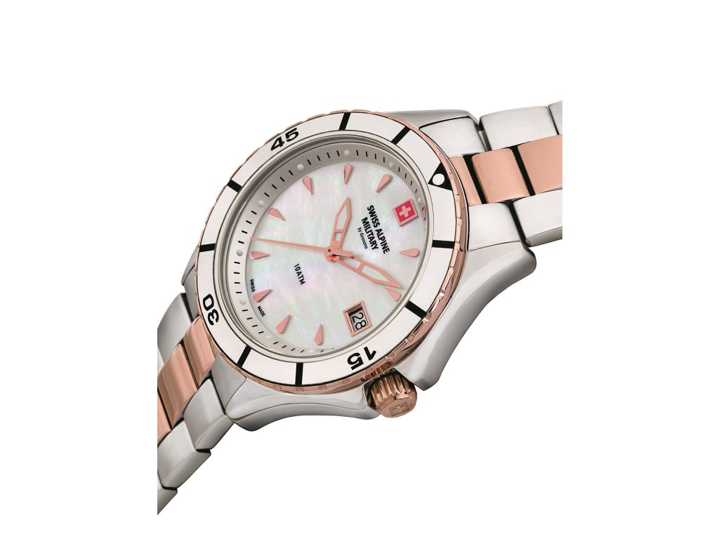 Dámske hodinky Swiss Alpine Military 7740.1153 sú elegantným spoločníkom z modelového radu Ladies Watch 36mm. Ideálna voľba, ak hľadáte hodinky s elegantným a zároveň moderným vzhľadom.Srdcom týchto hodiniek je Quartz (batériový) strojček, ktorý, ako je u hodiniek Swiss Alpine Military zvykom, zaručuje presné meranie času.