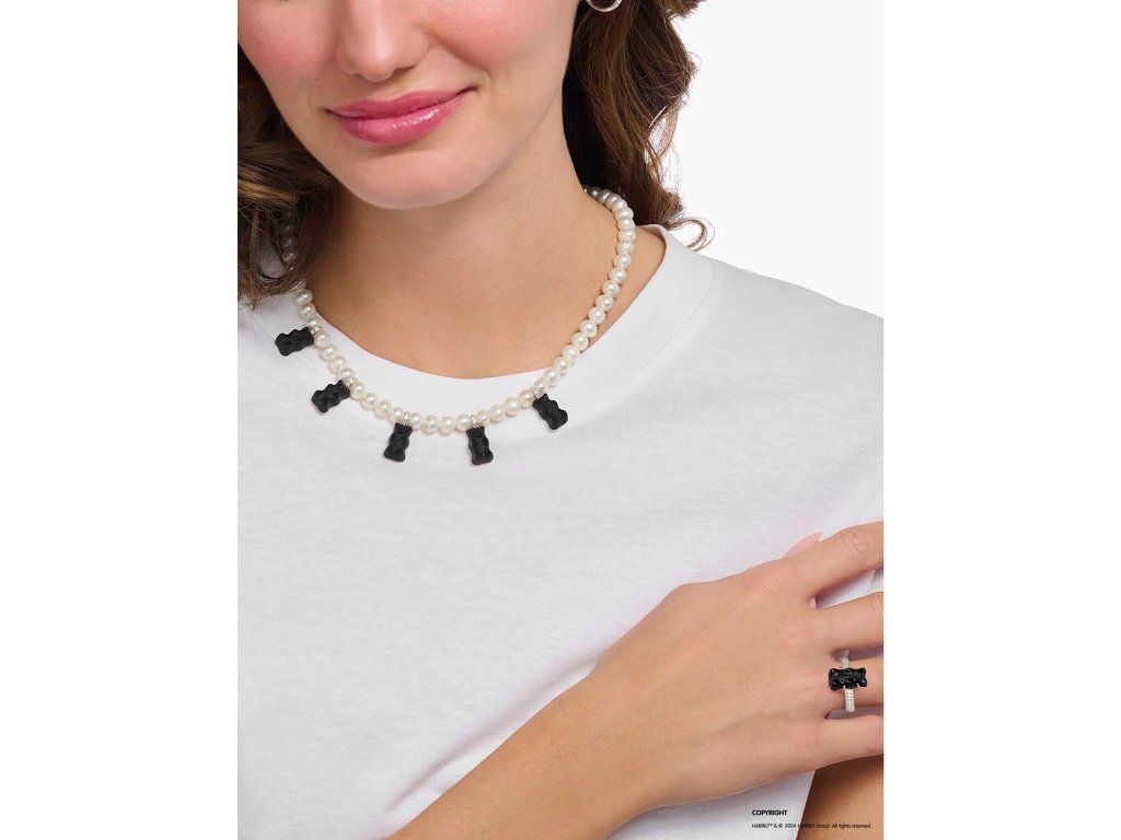 | Kolekcia: | Silver Pearl necklace With 5 Black Gold Bears |