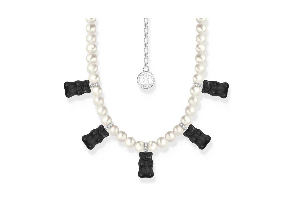 Thomas Sabo KE2208-052-11-L50V Silver Pearl necklace With 5 Black Gold Bears