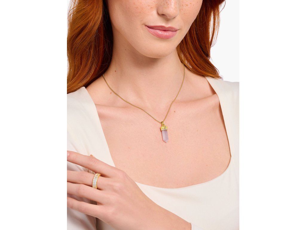 Thomas Sabo PE955-995-9 Gold-plated pendant w. rose-coloured rose quartz crystal