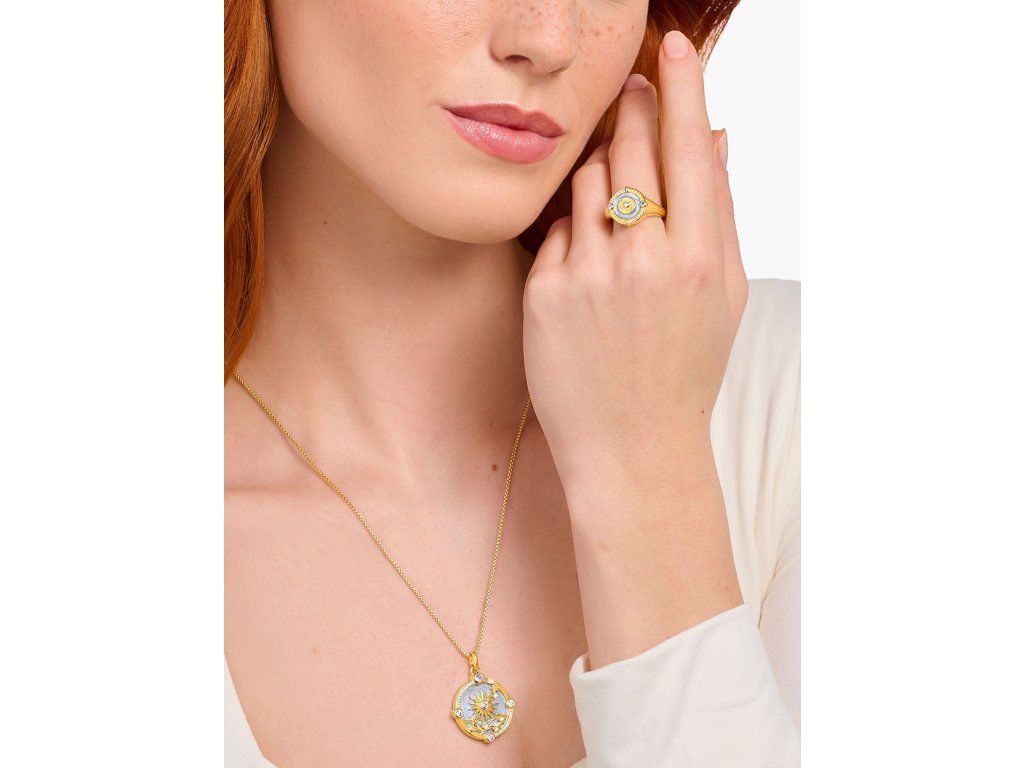 | Kolekcia: | Gold-plated signet ring with sun symbol and small stones |
