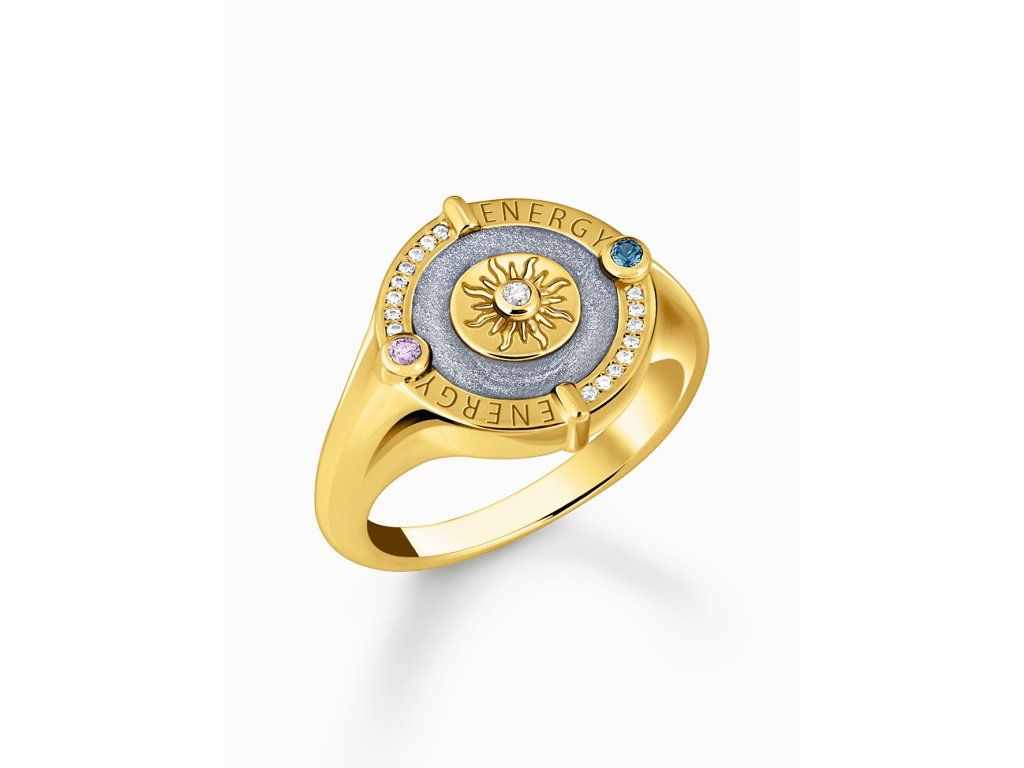 Thomas Sabo TR2449-974-1-54 Gold-plated signet ring w. sun symbol and small stones