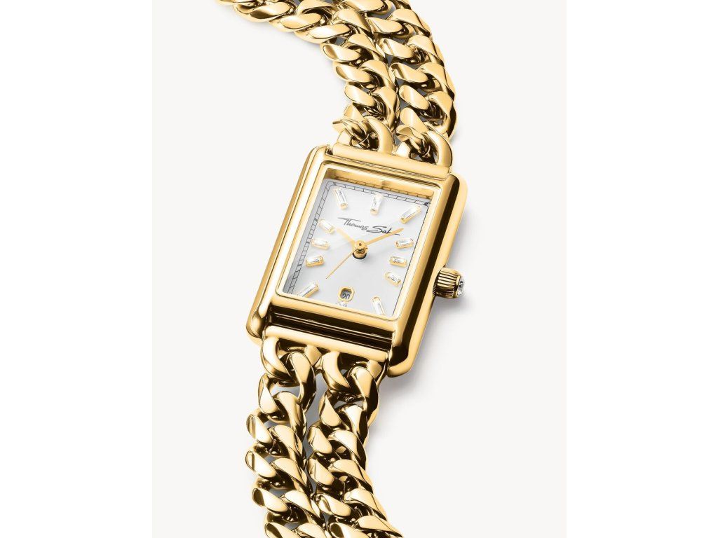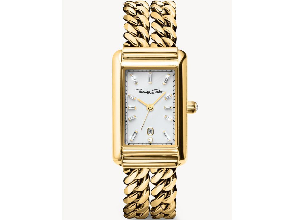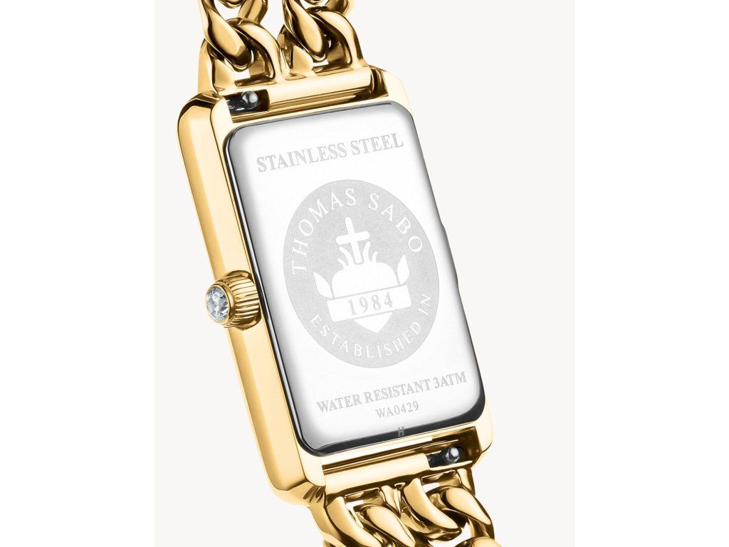 Dámske hodinky Thomas Sabo WA0429-291-207 sú elegantným spoločníkom z modelového radu Rectangular Gold-Colored 22mm 3ATM. Ideálna voľba, ak hľadáte hodinky s elegantným a zároveň moderným vzhľadom.Srdcom týchto hodiniek je Quartz (batériový) strojček, ktorý, ako je u hodiniek Thomas Sabo zvykom, zaručuje presné meranie času.
