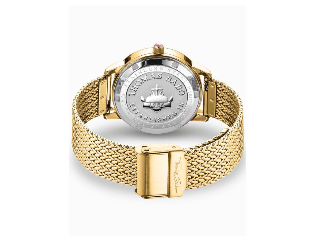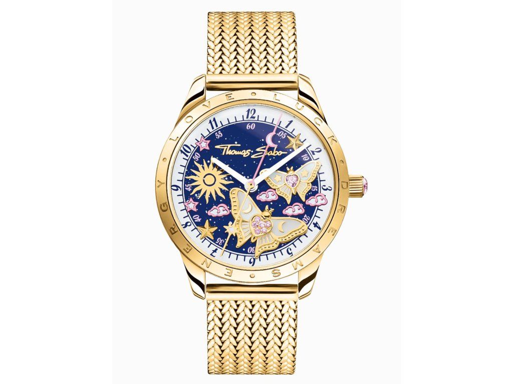 Dámske hodinky Thomas Sabo WA0430-291-207-33 sú elegantným spoločníkom z modelového radu butterflies gold-colored 33mm 5ATM. Ideálna voľba, ak hľadáte hodinky s elegantným a zároveň moderným vzhľadom.Srdcom týchto hodiniek je Quartz (batériový) strojček, ktorý, ako je u hodiniek Thomas Sabo zvykom, zaručuje presné meranie času.