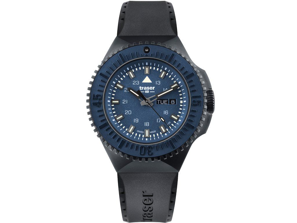 Pánske hodinky Traser 109857 sú jedinečným spoločníkom na každú príležitosť. Hodinky z modelového radu P69 Black Blue 46mm sú pre vás ideálnou voľbou, ak hľadáte hodinky s elegantným a zároveň moderným vzhľadom.Srdcom týchto hodiniek je Quartz (batériový) strojček, ktorý, ako je u hodiniek Traser zvykom, zaručuje presné meranie času.