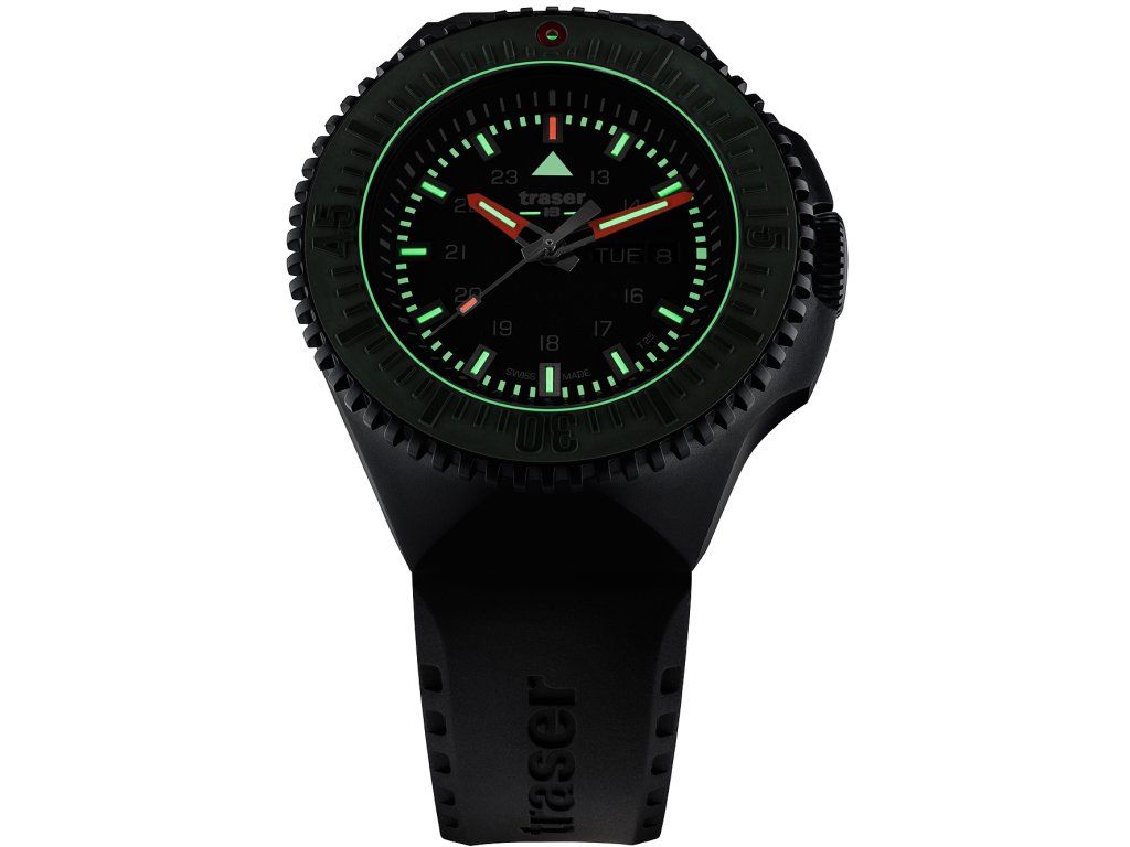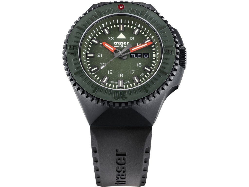 Pánske hodinky Traser 109859 sú jedinečným spoločníkom na každú príležitosť. Hodinky z modelového radu P69 Black Green 46mm sú pre vás ideálnou voľbou, ak hľadáte hodinky s elegantným a zároveň moderným vzhľadom.Srdcom týchto hodiniek je Quartz (batériový) strojček, ktorý, ako je u hodiniek Traser zvykom, zaručuje presné meranie času.