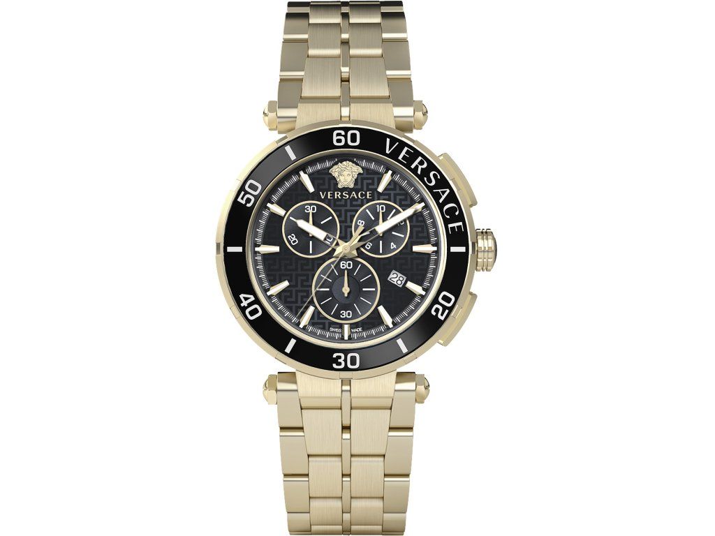 Pánske hodinky Versace VE3L00522 sú jedinečným spoločníkom na každú príležitosť. Hodinky z modelového radu Greca Chrono 45mm sú pre vás ideálnou voľbou, ak hľadáte hodinky s elegantným a zároveň moderným vzhľadom.Srdcom týchto hodiniek je Quartz (batériový) strojček, ktorý, ako je u hodiniek Versace zvykom, zaručuje presné meranie času.