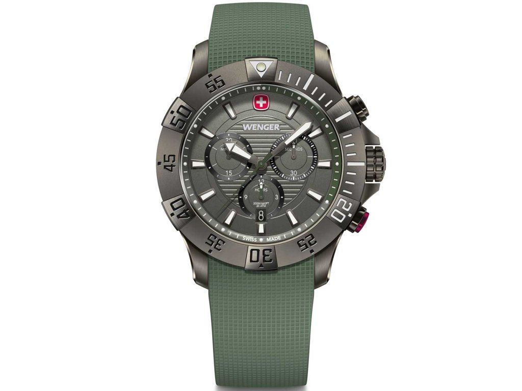 Pánske hodinky Wenger 01.0643.127 sú jedinečným spoločníkom na každú príležitosť. Hodinky z modelového radu Seaforce Chronograph 43mm 20ATM sú pre vás ideálnou voľbou, ak hľadáte hodinky s elegantným a zároveň moderným vzhľadom.Srdcom týchto hodiniek je Quartz (batériový) strojček, ktorý, ako je u hodiniek Wenger zvykom, zaručuje presné meranie času.